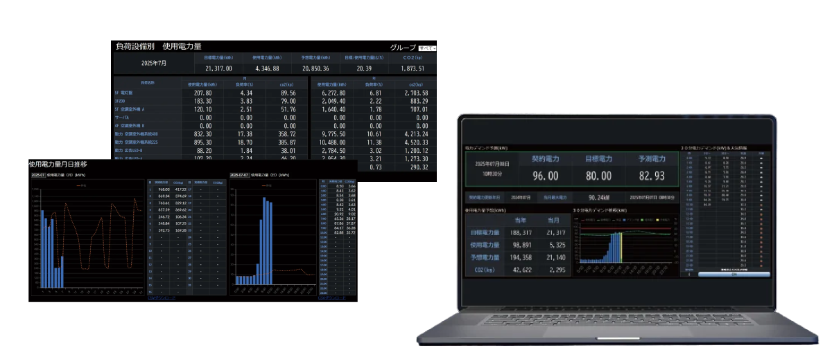 電力設備の消費データを収集・見える化し、電力使用の最適化を支援。エネルギーの使い方を改善するための運用をサポートするツールです。